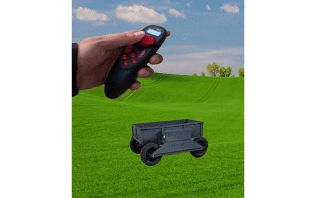 手元のリモコンで離れた場所から自在に操作できる無線式運搬車。