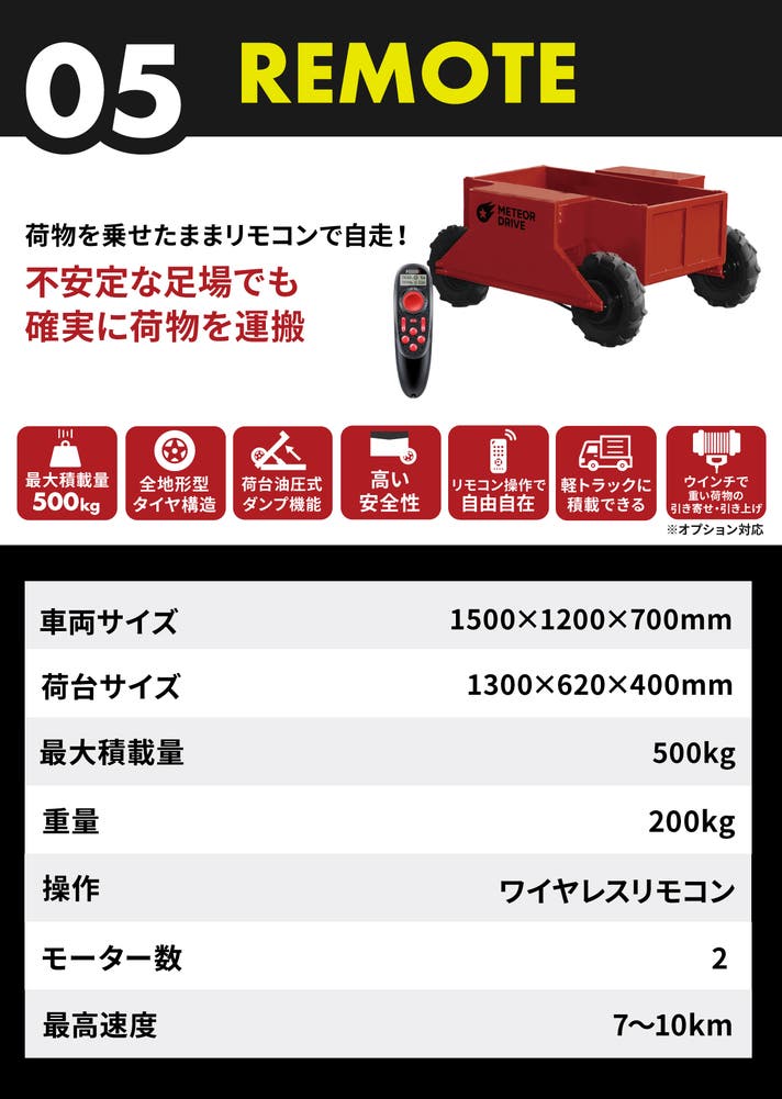 重労働に革命を起こす新時代の運搬車METEOR SERIES 誕生