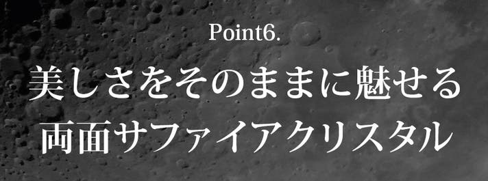 99.9999%の高純度サファイアガラスを前面・底面の両方に使用し、傷に強く・高い透明度を維持。