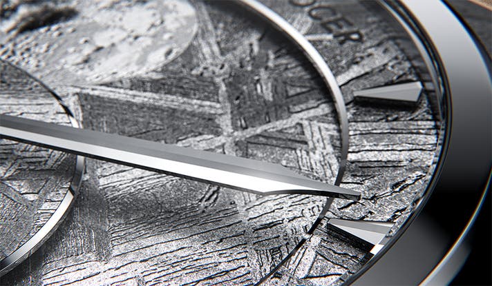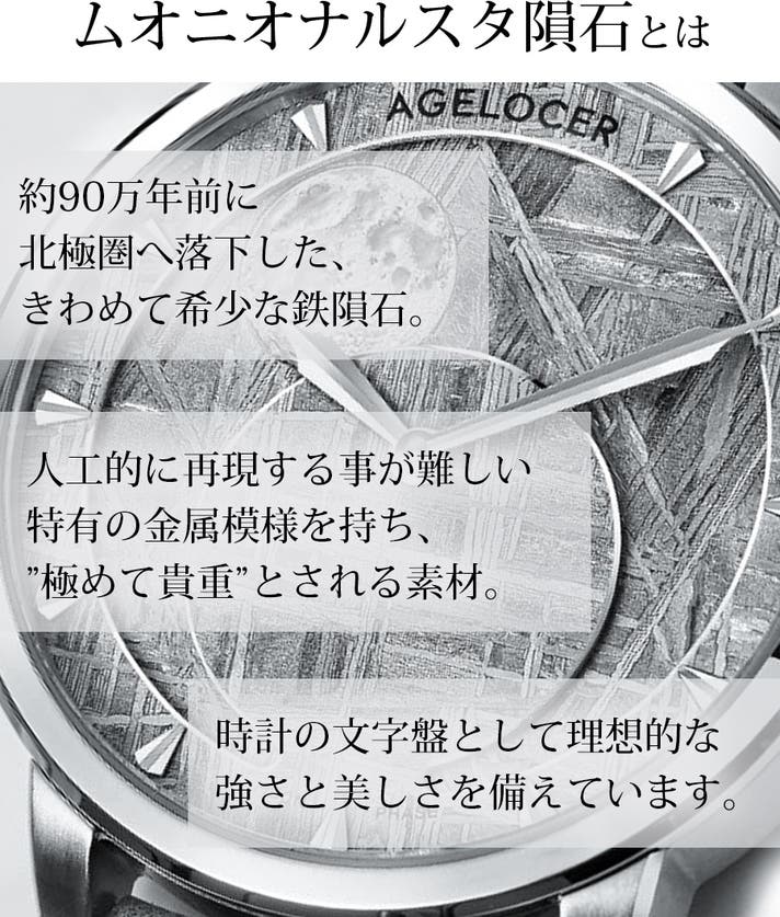 - 【希少】数億年かけた本物の隕石が生む“一点物”の文字盤。世界に一つだけの表情を宿します。