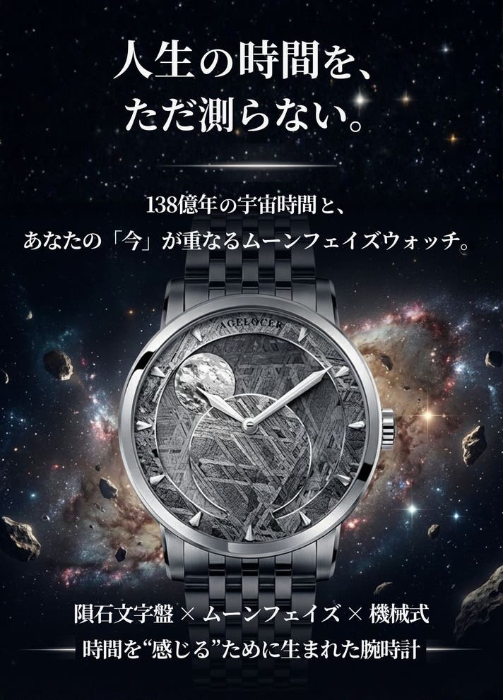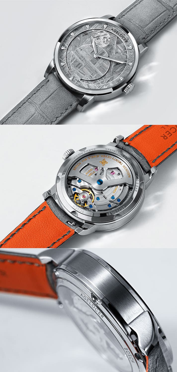 ムーンフェイズは本来、高級機械式時計にのみ搭載される機構ですが、AGELOCERは高度な精度を維持しながらより手に届きやすい価格帯を実現しました。