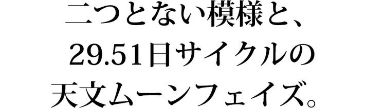 29.51日サイクルで正確に滑らかに動くフルムーンフェイズ。腕元で月が静かに踊るような体験を味わえます。