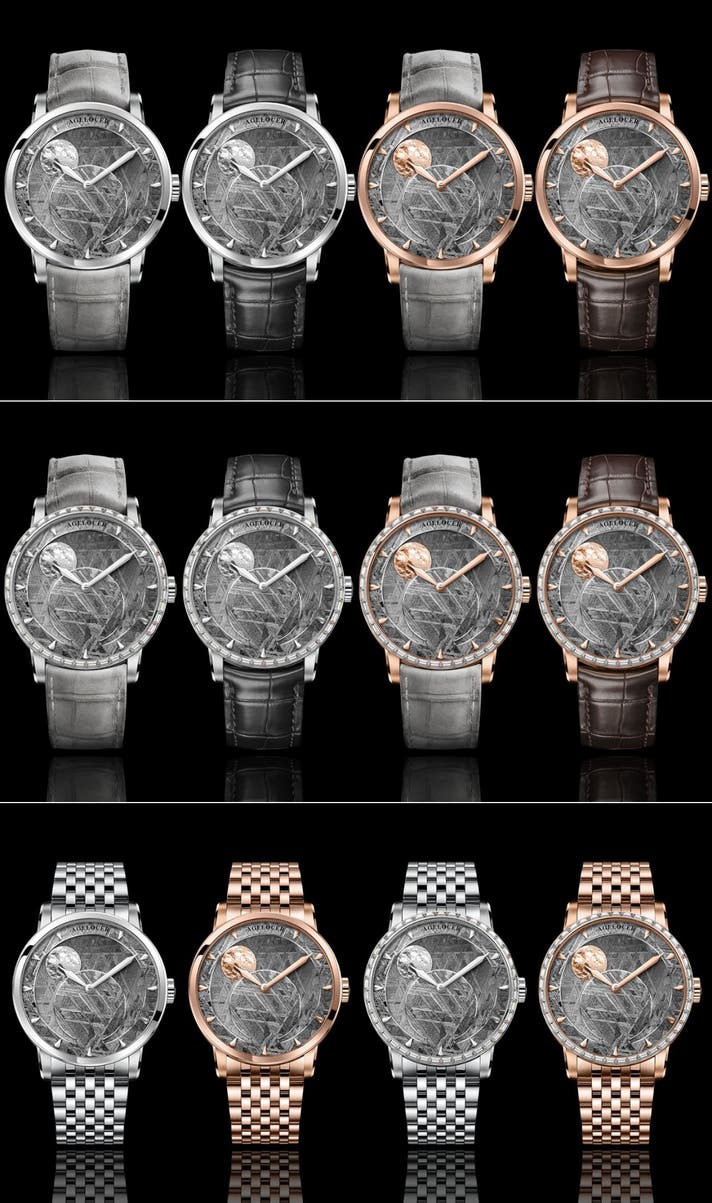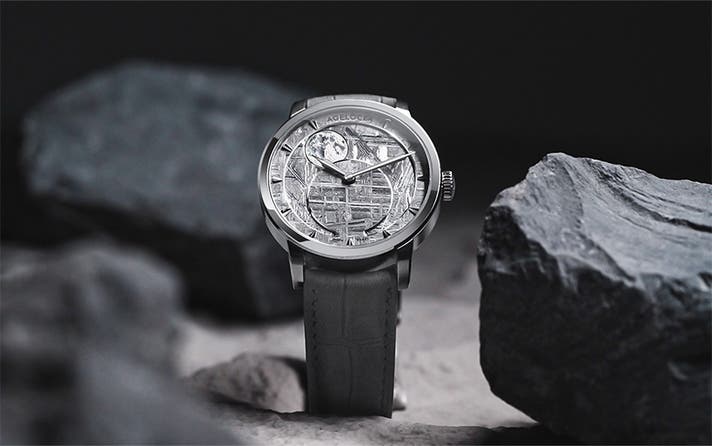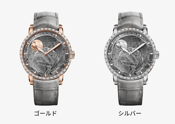 星空や月の満ち欠けをモチーフにしたデザイン。3D金細工で再現された月面の凹凸は、腕元で時の移ろいを詩的に描き出します。