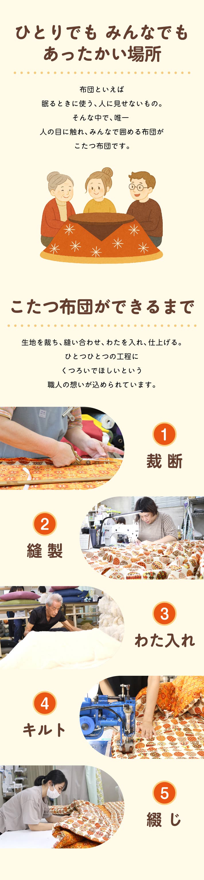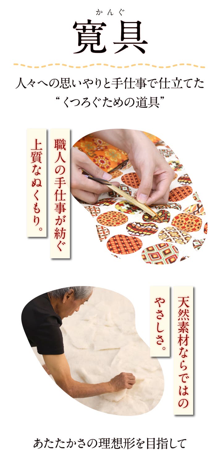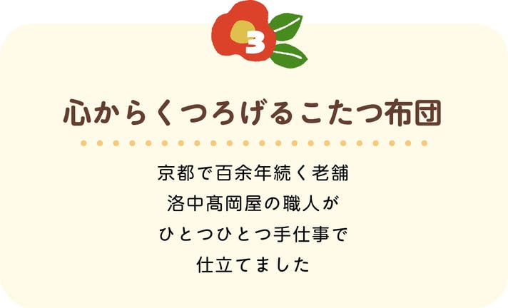 - 京都の老舗の職人が仕立てた、心からくつろげるこたつ布団。