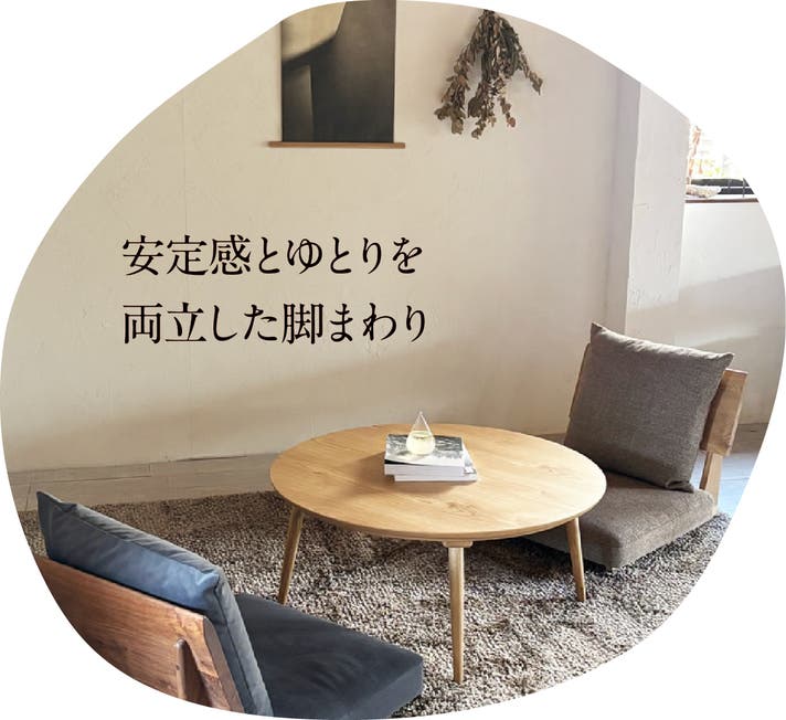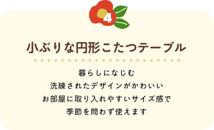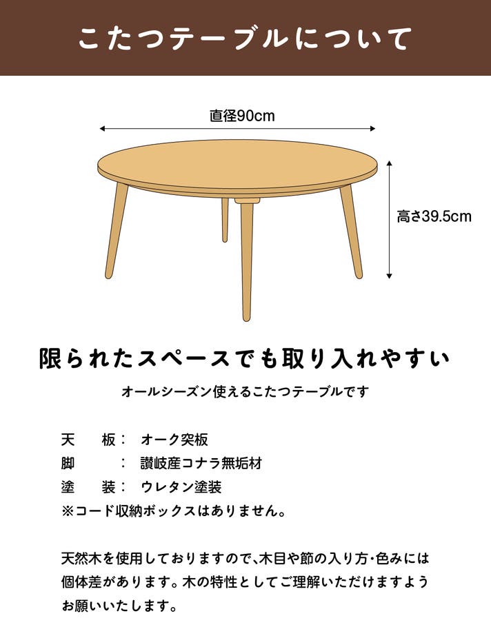 昭和100年記念にふさわしい、直径90cmのコンパクトな円形のこたつテーブル。