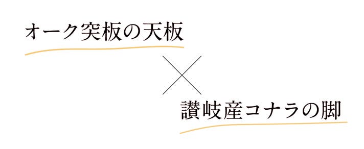 オーク突板の天板と讃岐産コナラの脚は、そのナチュラルな色味と木の表情を生かすクリアカラーで仕上げました。