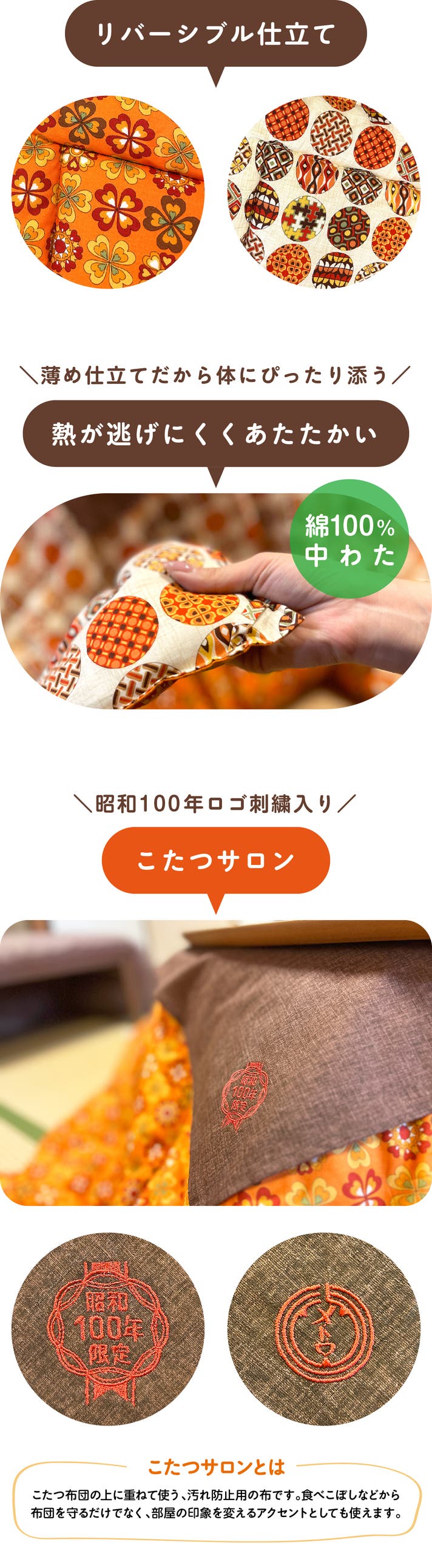 ぜひこの機会に、昭和100年記念こたつで心からくつろげる時間をお過ごしいただけたら嬉しいです。