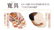 洛中髙岡屋の根幹にあるのは、人々への思いやりと、細やかな手仕事で仕立てたくつろぐための道具「寛具(かんぐ)」と呼ぶ、ものづくりへのこだわりです。