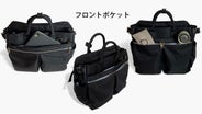 バッグのフロント1層目には、バッグのデザイン性を高めたWファスナーポケット。2層目には大きな開閉口のファスナーポケットを装備しています。