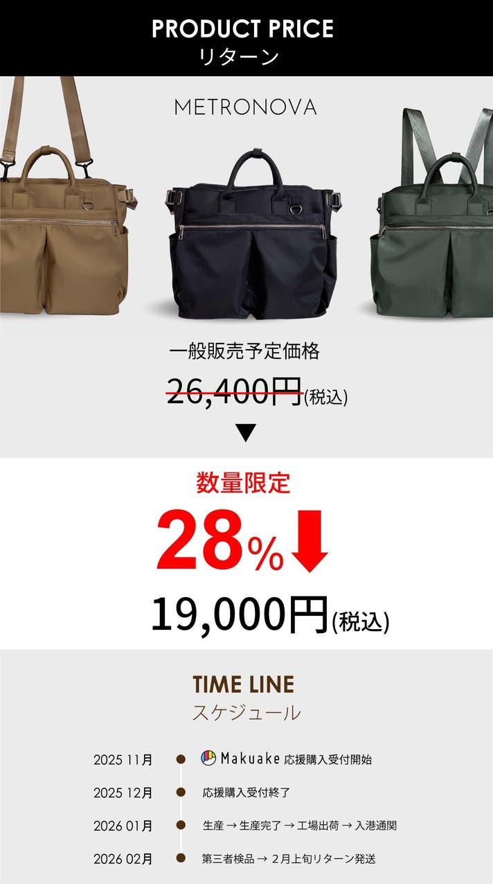 「13インチPCやA4書類が入り、仕事にもプライベートにも使える多機能バッグが欲しい」というサポーターの皆さまの声から生まれました。
