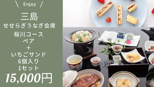 ※いちごサンドはプロジェクト終了後の7月中にご郵送いたします。せせらぎうなぎ会席はチケットとなります。静岡県三島市へお越しいただける方が対象となりますのでご注意ください。詳細は活動レポートにて随時、配信します。