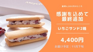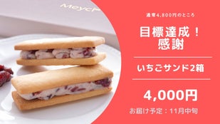 ※いちごサンドはプロジェクト終了後の7月中にご郵送いたします。菱屋謹製和風おせちは2022年12月30日午後発送となります。いちごサンドとおせちの到着は期間が異なりますのでご注意ください。詳細は活動レポートにて随時、配信します。