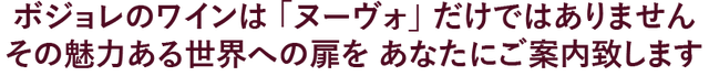 「ヌーヴォ」だけではない、そして赤ワインを基準に想定されたボジョレワインの規格に収まりきれない、バラエティ豊かな味わいをお楽しみください。