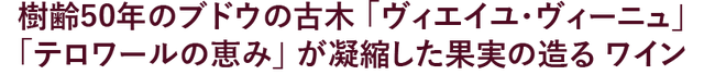 結果的に、手入れの行き届いたヴィエイユ・ヴィーニュのブドウ畑から収穫される果実は、その「旨味」となる栄養分が凝縮され、その土地特有のテロワールの恵みをカタチにしたものとなります。これが、その「畑」ごとに「個性」が際立つ味わい深いワインの違いを形づくるのです。