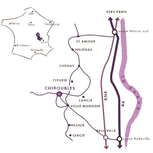 フランス中東部、ブルゴーニュの南部に位置するボジョレ地区。ボジョレワインの名称でワインを造る村は100近くありますが、その中で、格付上位となる AOC「Beaujolais-Villages」ヴィラージュの呼称を許されているのは半分以下。