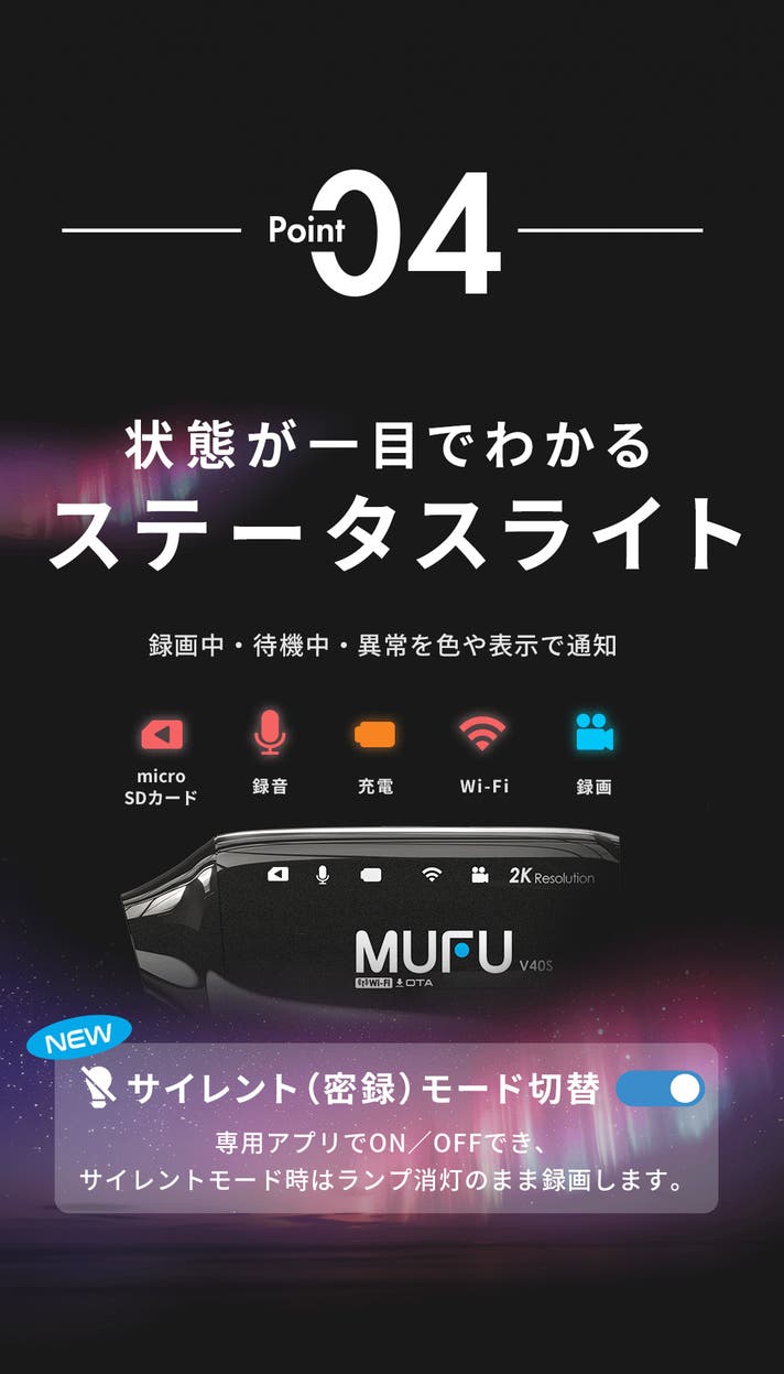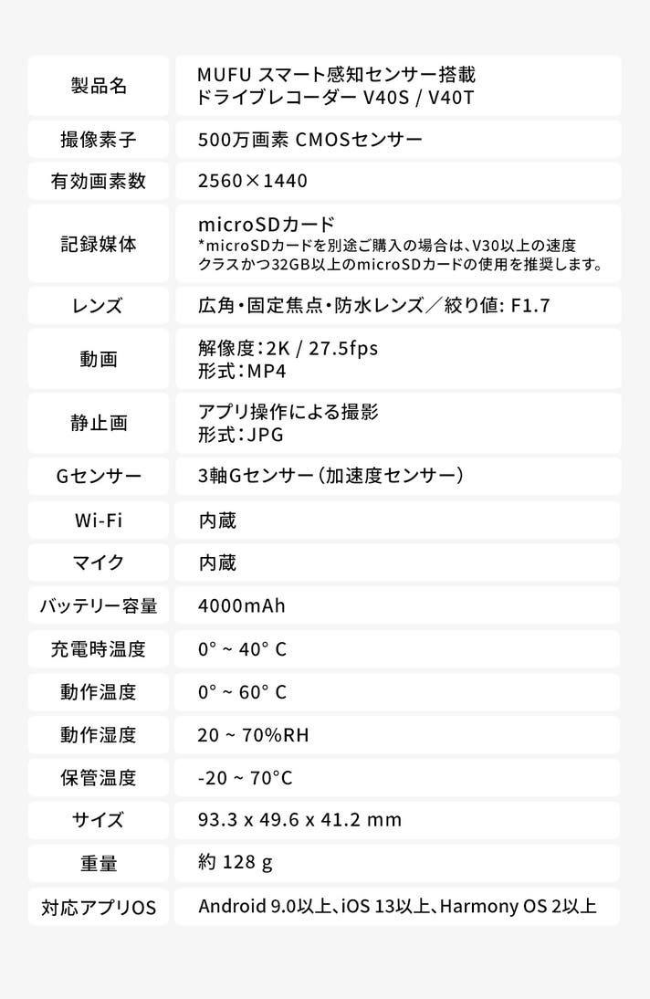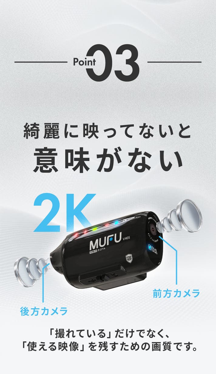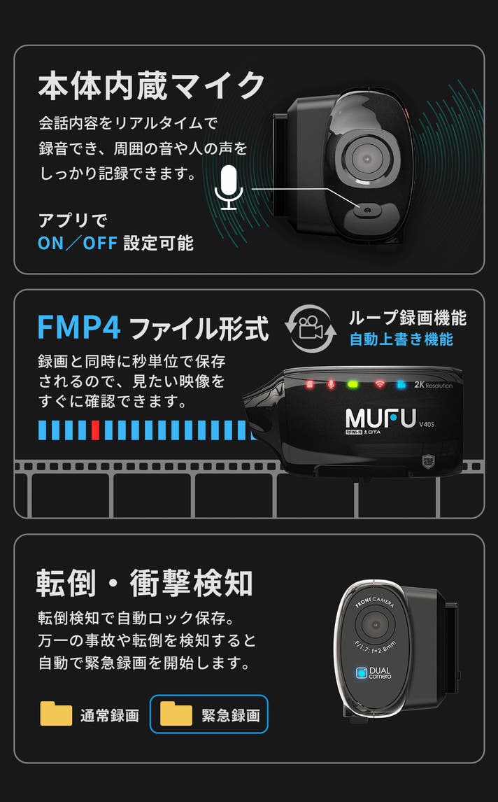 - ボタン操作は無く、取り付けるだけで録画を開始する前後2K録画ドライブレコーダー!