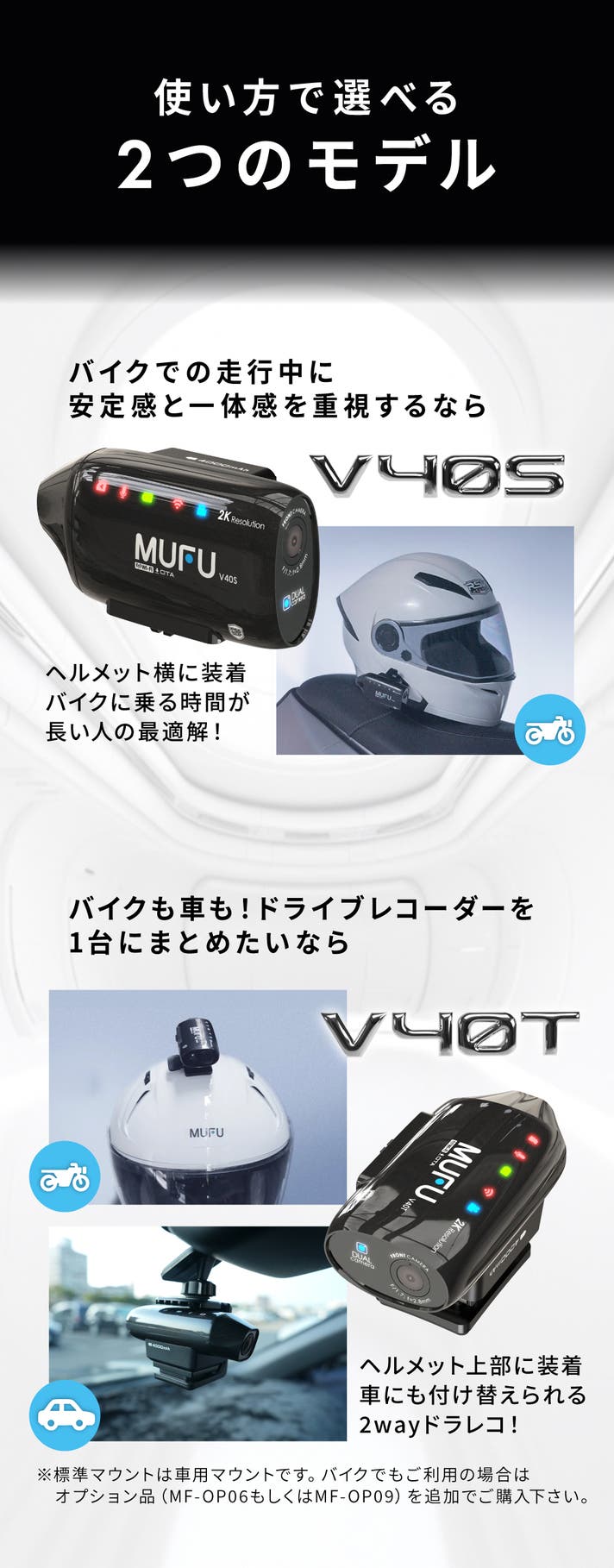 V40S バイク用、V40T 車&バイク用