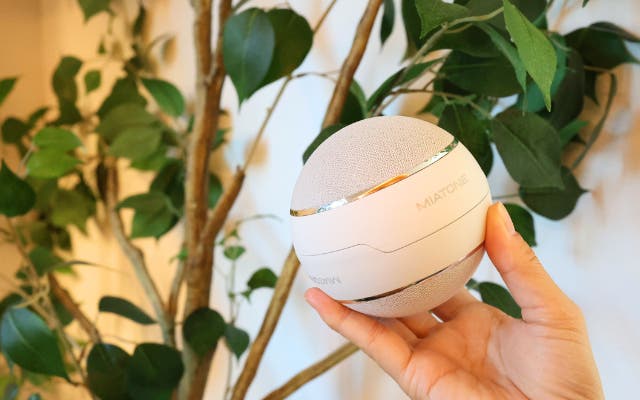 直径わずか9cmのコンパクト球体は、見た目に美しいだけでなく、デスクやベッドサイドにもすっきり置くことができます。