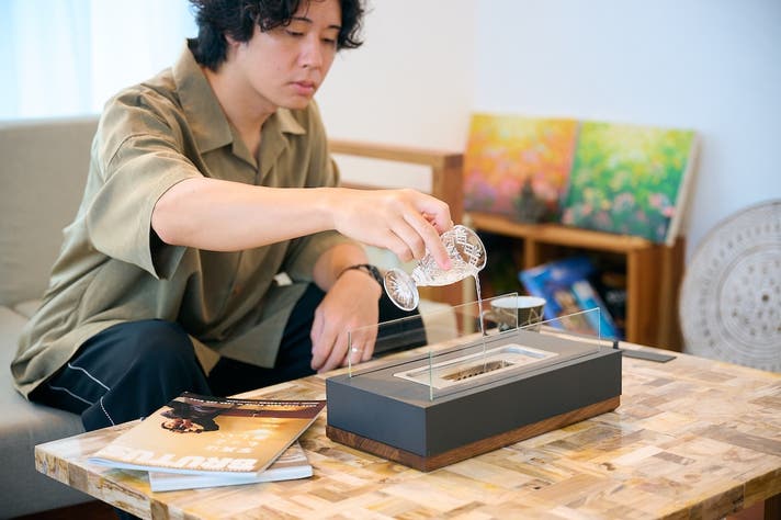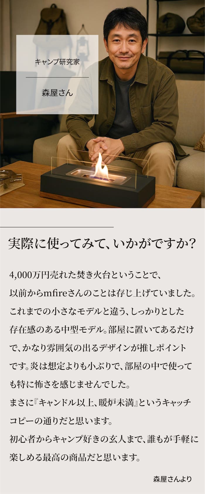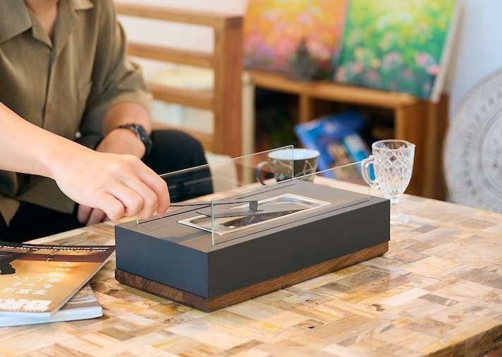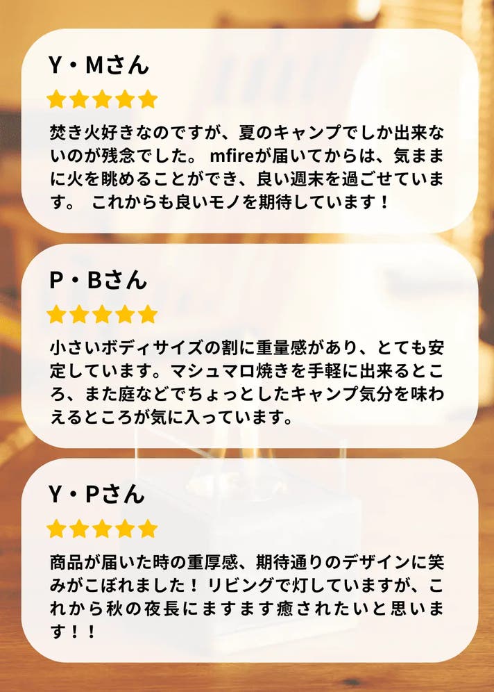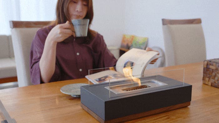 mfireはゆらめく炎を眺めていると落ち着くことに着目し、もっと手軽に焚き火気分を楽しめたらという思いから生まれました。