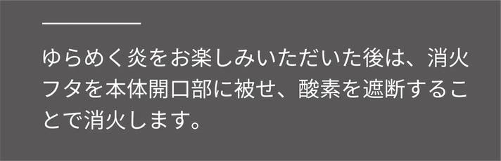 ちょっとした時間に使える、手軽な小型暖炉です。です。火を消すときは、フタをサッと被せるだけで消火完了です。