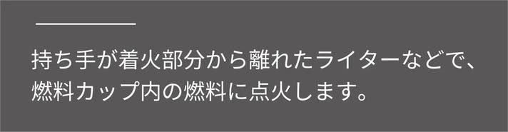 mfireの使い方はとても簡単。燃料を付属のカップに注いで、ライターで火をつけるだけです。これだけの手順なので、かかる時間はたった10秒。