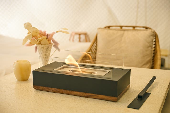 A.本物の炎のため、使い方を間違えれば危険となる可能性がございます。小さなお子様やペットがいるご家庭では、特に使用に際して十分な注意を払ってください。燃えやすい物の近くや不安定な場所には置かず、安定した平らな場所に置き、一定の距離をとってご使用ください。