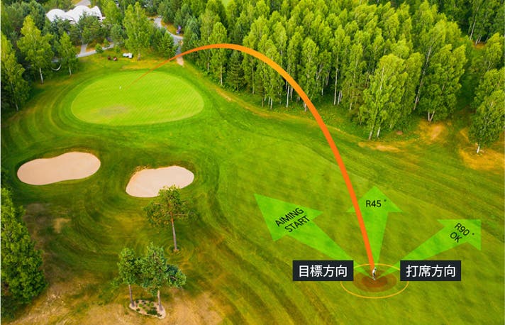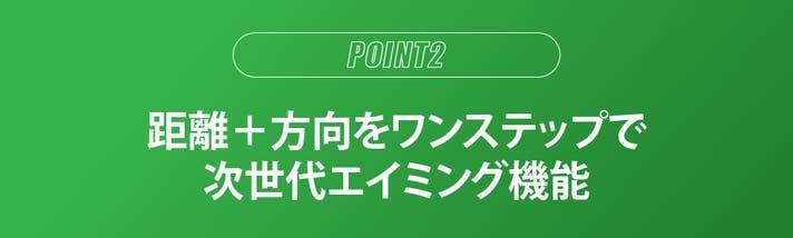 エイミング機能は、打席からピンまでの方向を数値化して表示します。感覚に頼ってラインを決めていた場面でも、明確な数値のガイドがあることで迷いがなくなります。