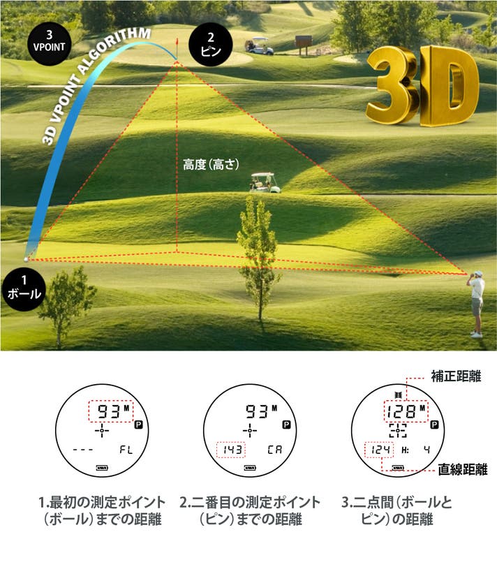 - 113gの軽さに凝縮された3点間距離測定。精密なデータがクラブ選択を導く新感覚のゴルフ距離計