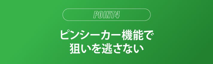 - フル充電で約5000回使用可能なバッテリーとピンシーカー機能で確実に捉える一打一打をサポート