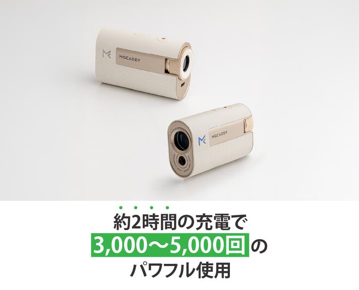 A. 2時間の充電で最大5,000回測定が可能です。通常のゴルフラウンドであれば数週間お使いいただけます。
