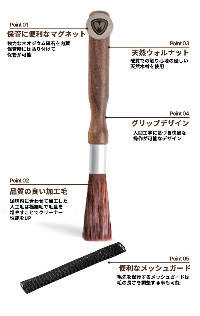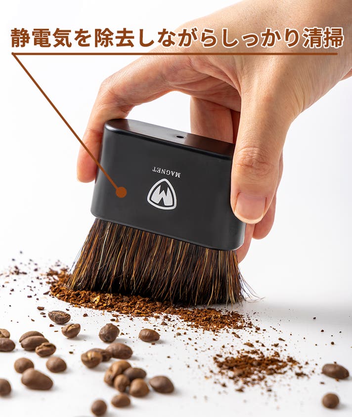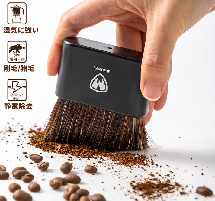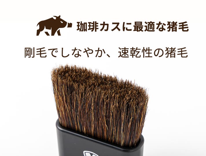 - 静電対策され、珈琲カスに適した猪毛のカウンターブラシ