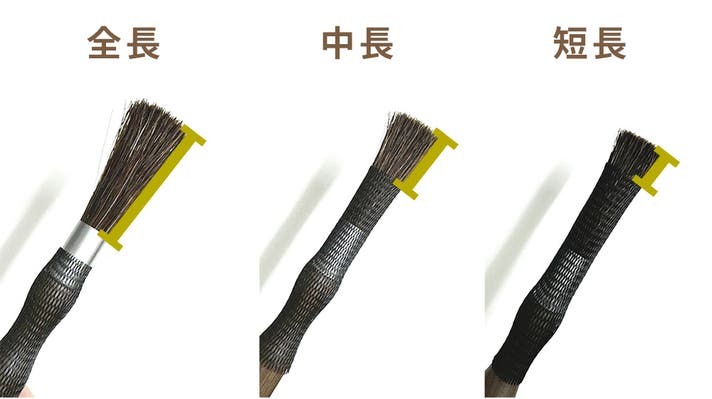 人工毛では猪毛ほど剛毛ではない代わりに逆に柔らかくしなやかな毛先にし、毛量を増やすことで清掃性能を上げています。