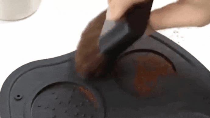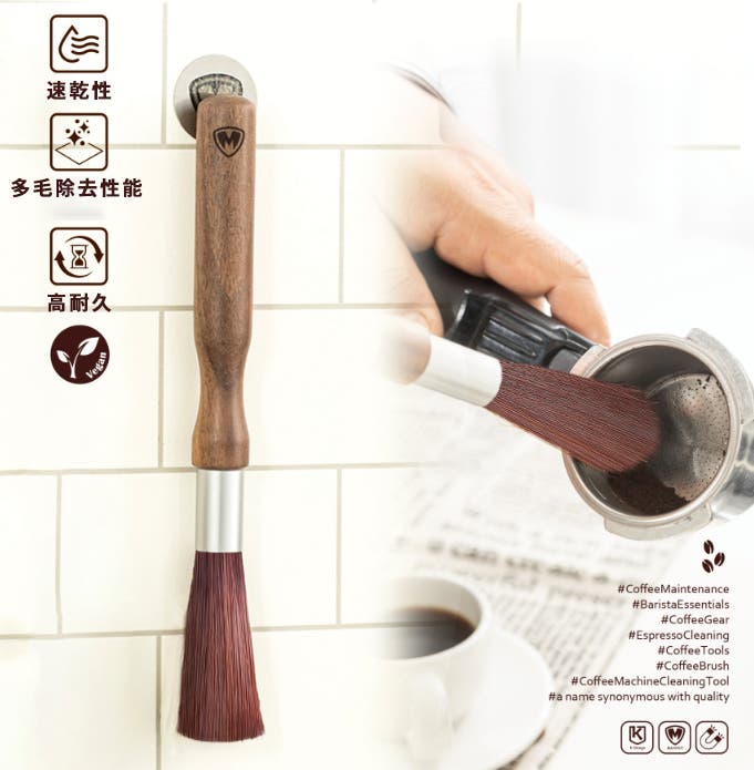 細かい人工毛は機器の隅々まで入り込み効率よく珈琲カスを掻きだします。