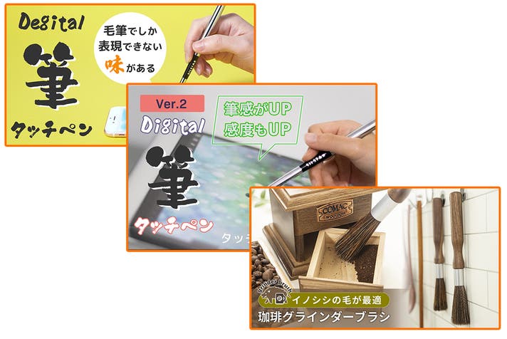 毛を作るという観点からタッチパネル用の筆や清掃用の静電ブラシなど毛を扱う商品を様々企画している面白いメーカーです。