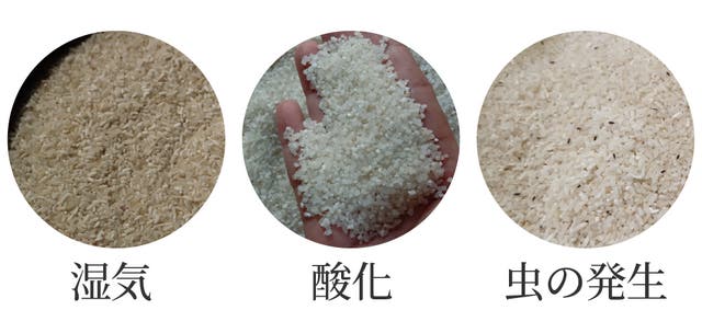 A : 一般的なお米の水分含量は15%で、これより高い含量の玄米などの場合は保管時に変色しやすくなったりカビが生える恐れがあります。 水分含量の高いお米はできるだけ早く使い切ってください。