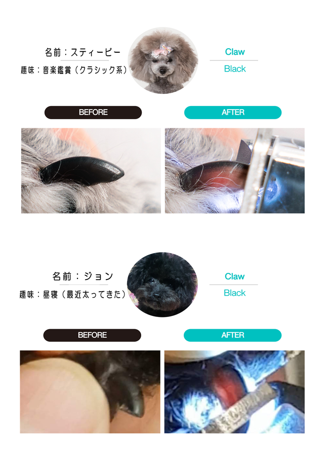 血管を確認しなくてもスイスイ切れる慣れている飼い主様、爪が白透明色で明らかに血管が透けてみえる場合はLOOKUT/AIRでもいいかと思います。