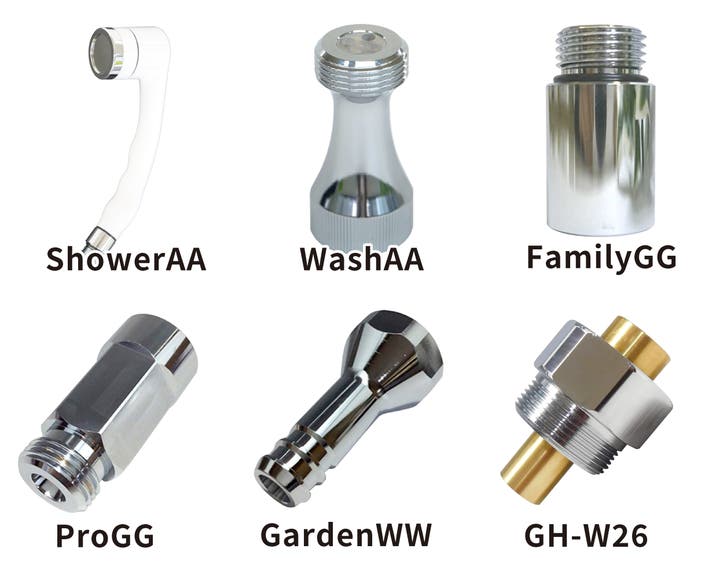 洗濯機用ナノバブル発生器「WashAA」とシャワーヘッドのセットです。