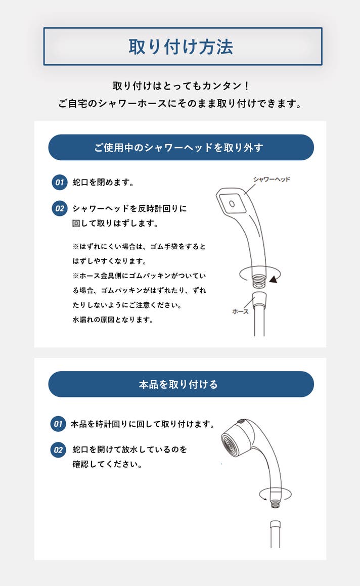 ・浴室専用なので洗面化粧台や台所用には取りつけ不可