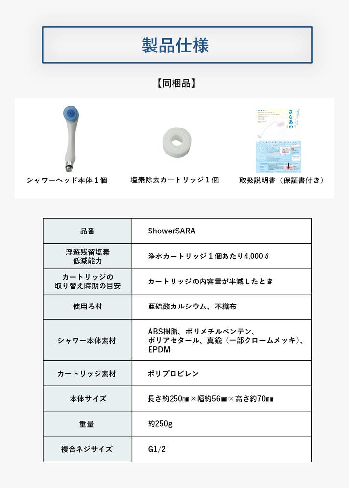 ・塩素除去カートリッジ×1点(約4,000L分の浄水可能)