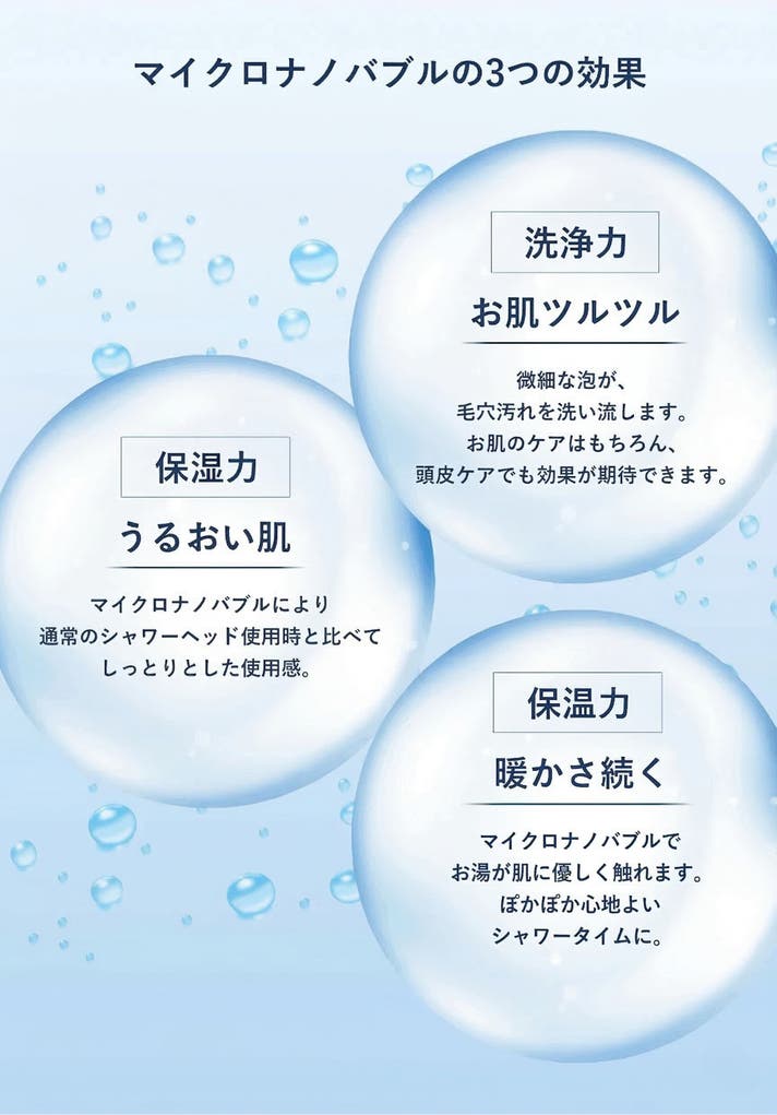私たちが手がけるマイクロバブル技術は、「汚れを落とす」「肌を整える」「水を変える」といった目に見える効果を日常に届ける力があります。