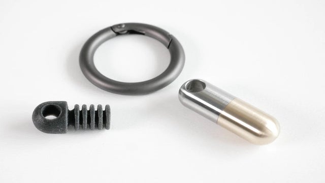 ※左から「キャップホルダー」「カラビナ」「MicroBladePill本体」