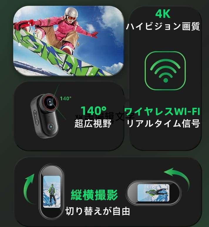- 4K超高清画質を実現!140度超広角レンズで、スキーなどのアクティビティも全方位撮影可能