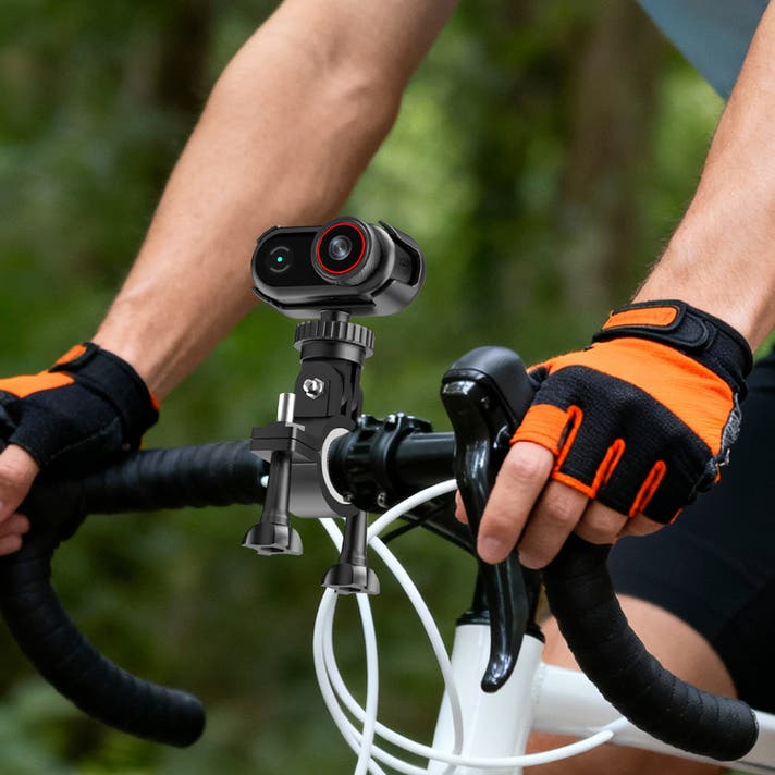 自転車・バイクのハンドルバーにカメラを固定するスタンドで、ライディング中の風景や自身の動作を撮影する際に使用します。