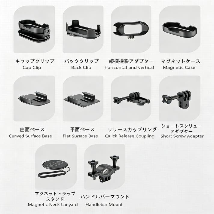 カメラの撮影角度を縦向きまたは横向きに固定するための部品で、SNS向けの縦動画や通常の横動画撮影を安定的に行うことができます。