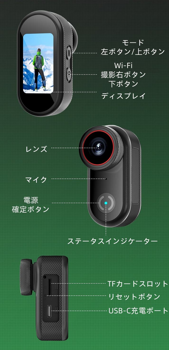 - 横撮り・縦撮りをワンタッチで切り替え可能!指先サイズの小型ボディでどこでも自由に撮影ができます