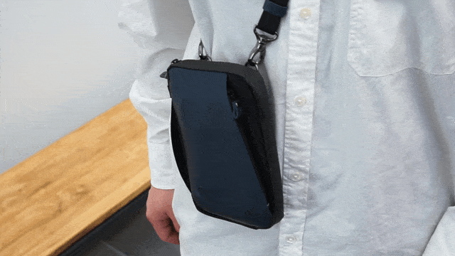 前に持ってきても邪魔にならずにスマートフォンもすぐに出し入れ可能です。