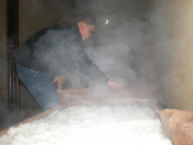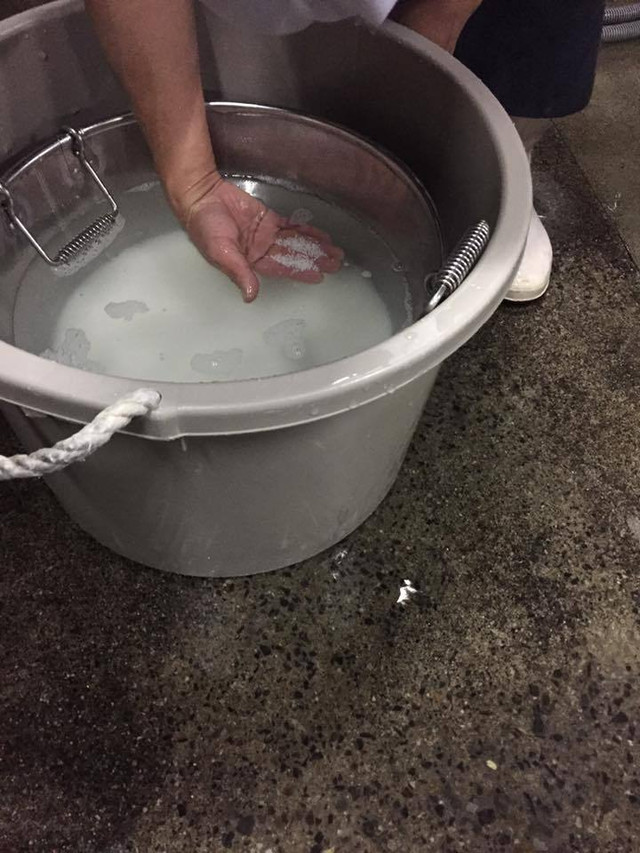 <蒸米>米洗いを終えた後、しっかり水気を切り一晩なじませて早朝蒸へ