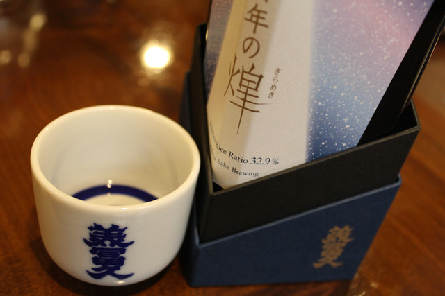 純米大吟醸ならではのフルーティーさがあり、爽やかさとふくよかな味わいを引き出すためワイングラスなどの香りを引き出すグラスを使い、夜空にきらめく満点の星空と夜景の輝きを楽しみ、近江の地酒「美冨久酒造」創業100年がつまった特別酒「百年の煌(きらめき)」をゆっくりと大人の雰囲気を醸し出しながらお召し上がりいただける様に醸しました。
