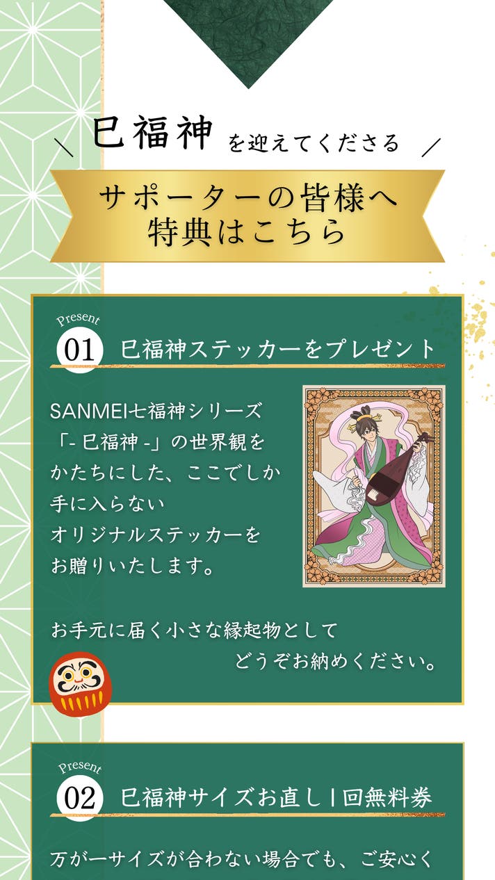 「巳福神」を手に取ってくださった皆さまに幸せが訪れることを願い、心を込めて対応いたします。応援の程よろしくお願いいたします!