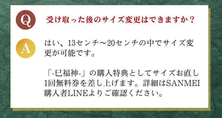 A.到着後8日以内に「SANMEI購入者限定LINE」またはMakuakeメッセージよりご連絡くださいませ。